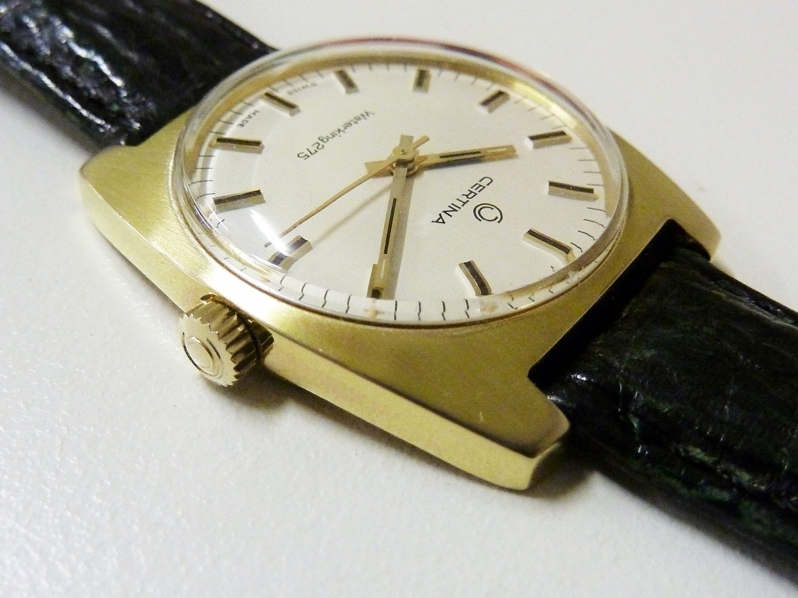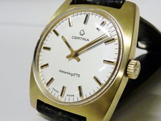 Certina handopwinder ivoorkleur wijzerplaat met schroefdeksel.