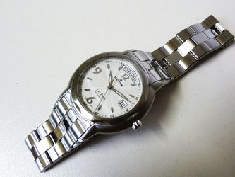 Saffierglas 2x met zichtvenster en stalenband met vlindersluiting.