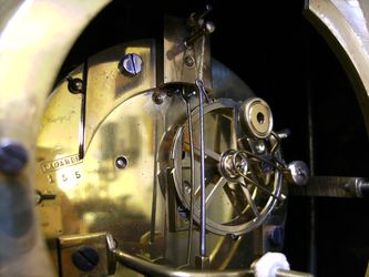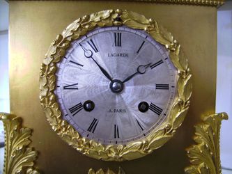 Franse pendule: Lagarde a Paris. 8-Daags met slagwerk ca. 1835. Hoogte 42 cm. Periode: Louis Philippe. Slingerophanging aan een koordje. Geheel gerevideerd hooggepolijst ankeruurwerk. Pendule verkeerd in nieuwstaat met 2 jaar garantie. Prijs € 2475,-