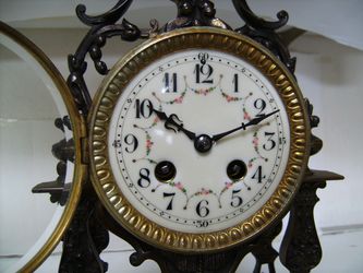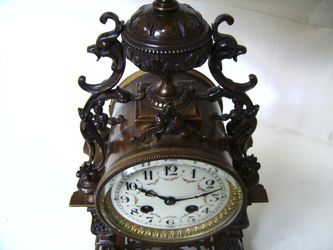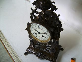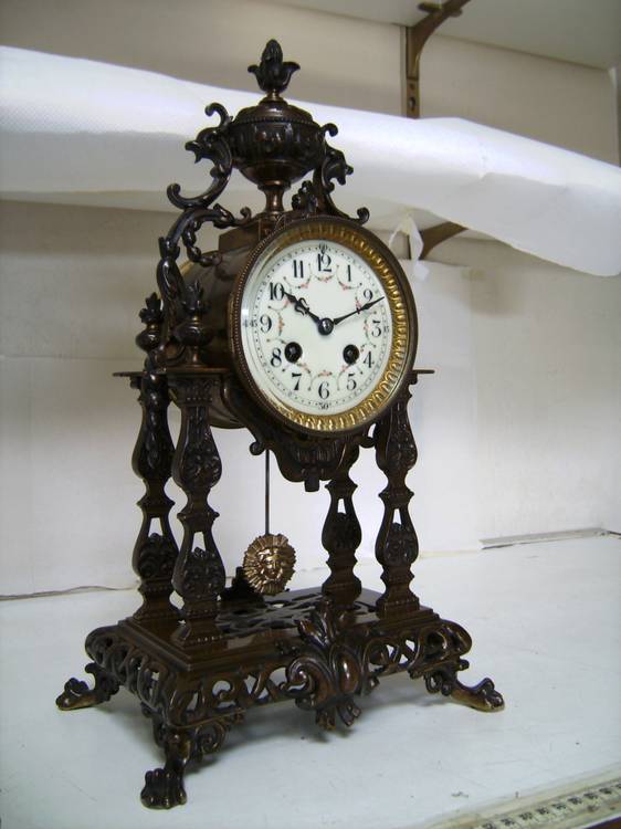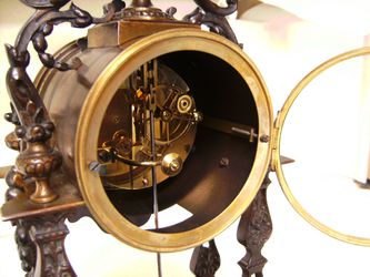 Bronzen franse pendule 8-daags met slagwerk uit 1855bekroond met Grande Medaille D'Honneur.Geheel gerevideerd hooggepolijst ankeruurwerk verkeerdin nieuwstaat met 2 jaar garantie.Prijs 1485,-