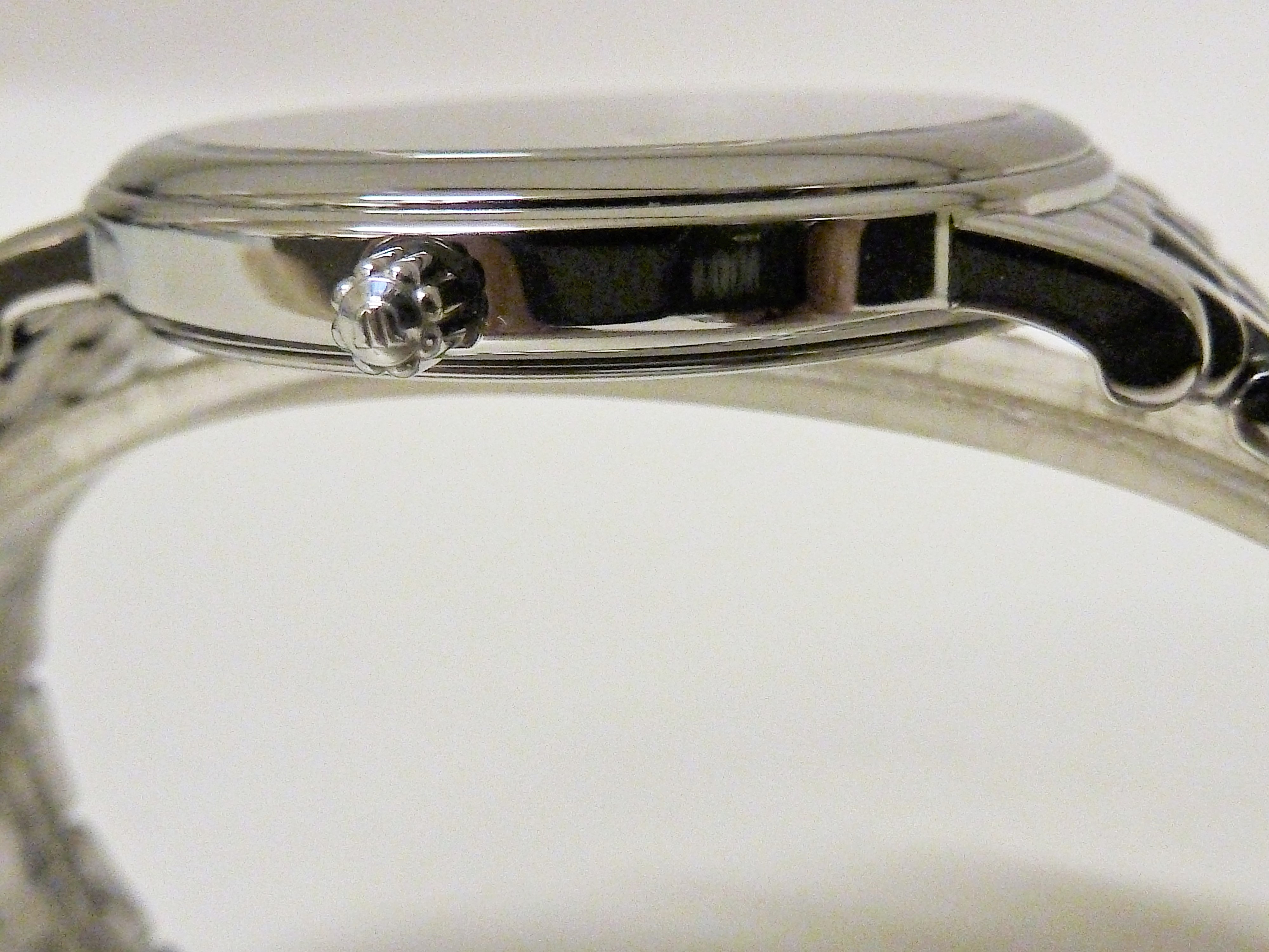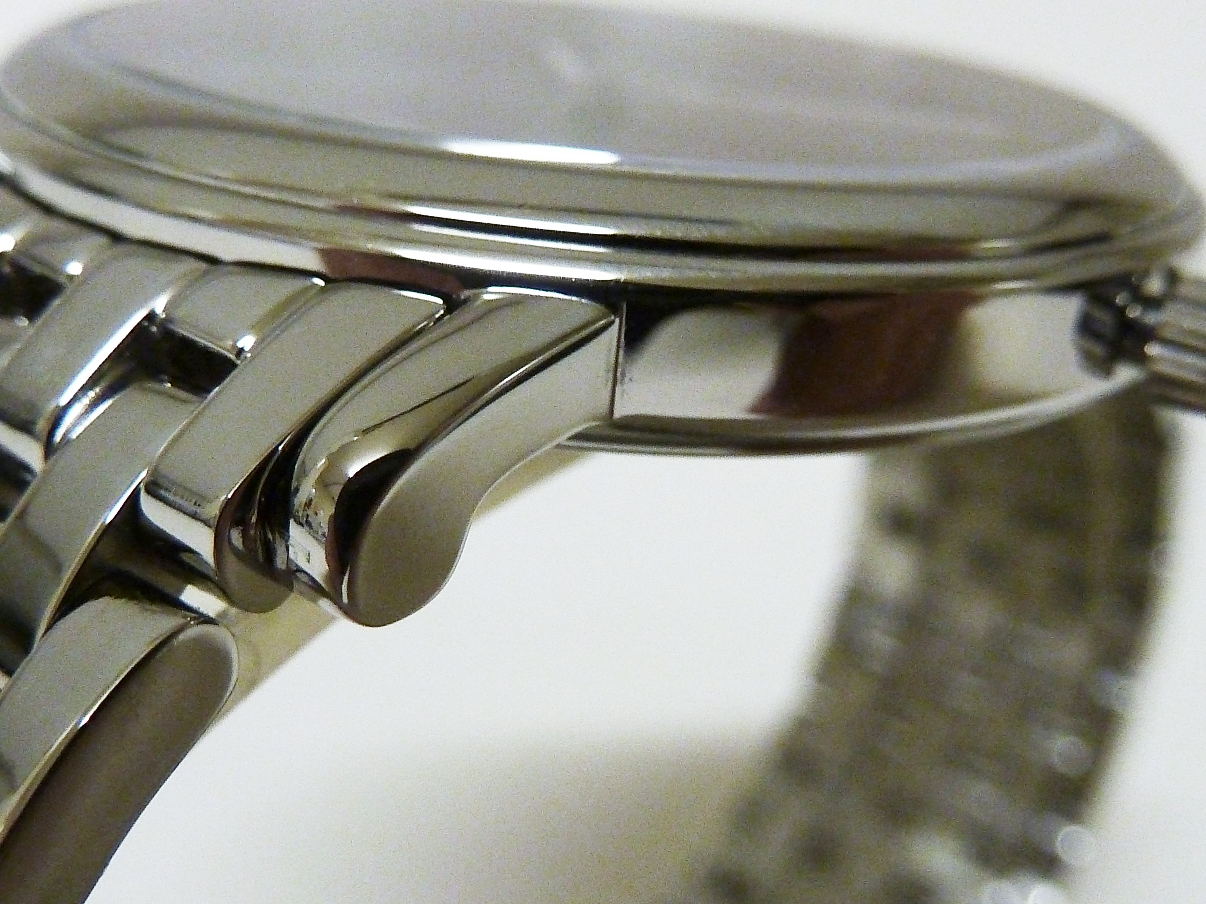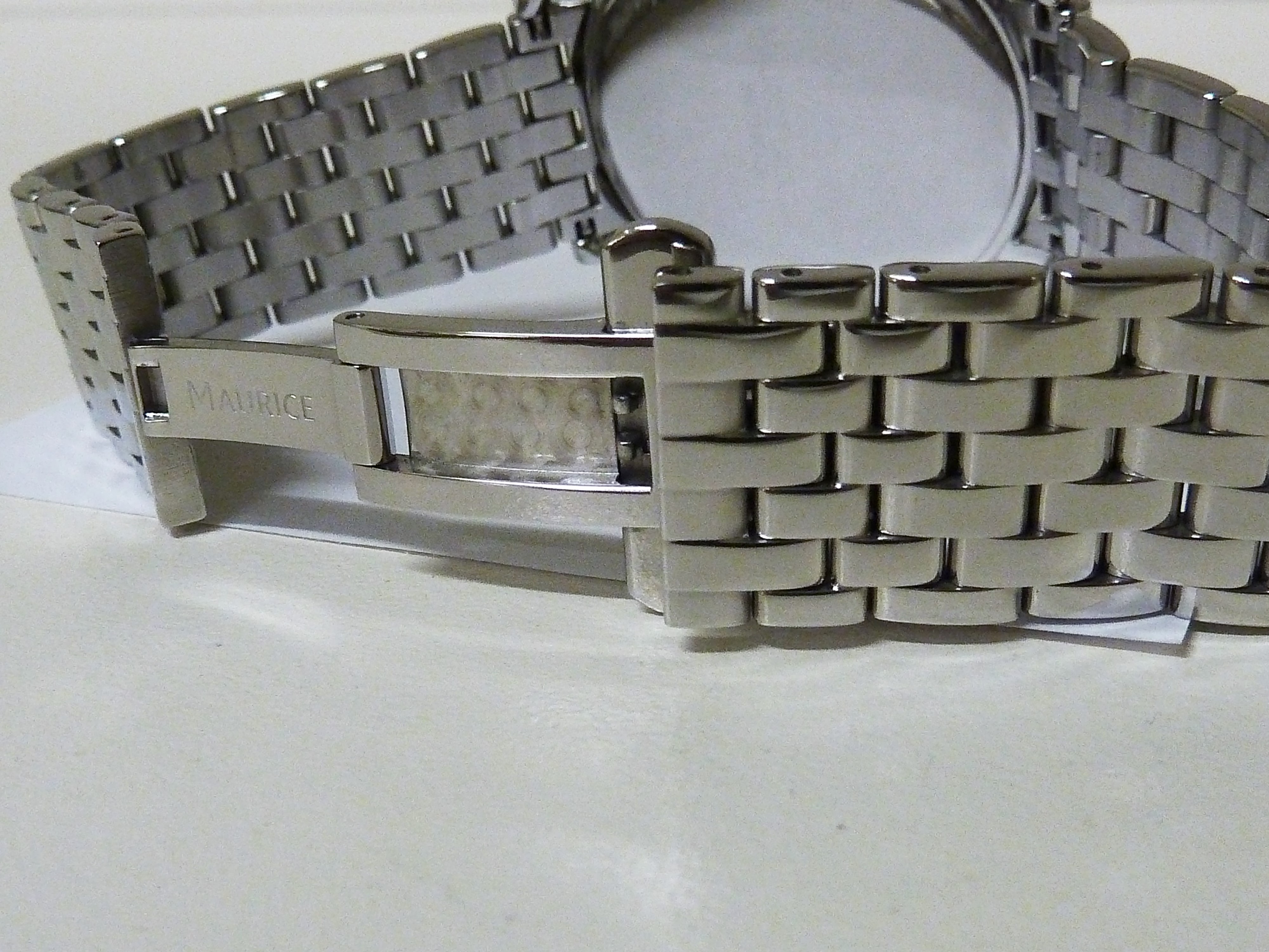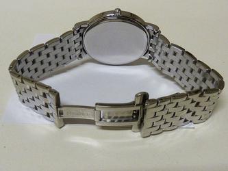 Edelstalenkast met saffierglas diameter 38 x 44 mm. hoogte 7,5 mm, originele stalenband met vlindersluiting.