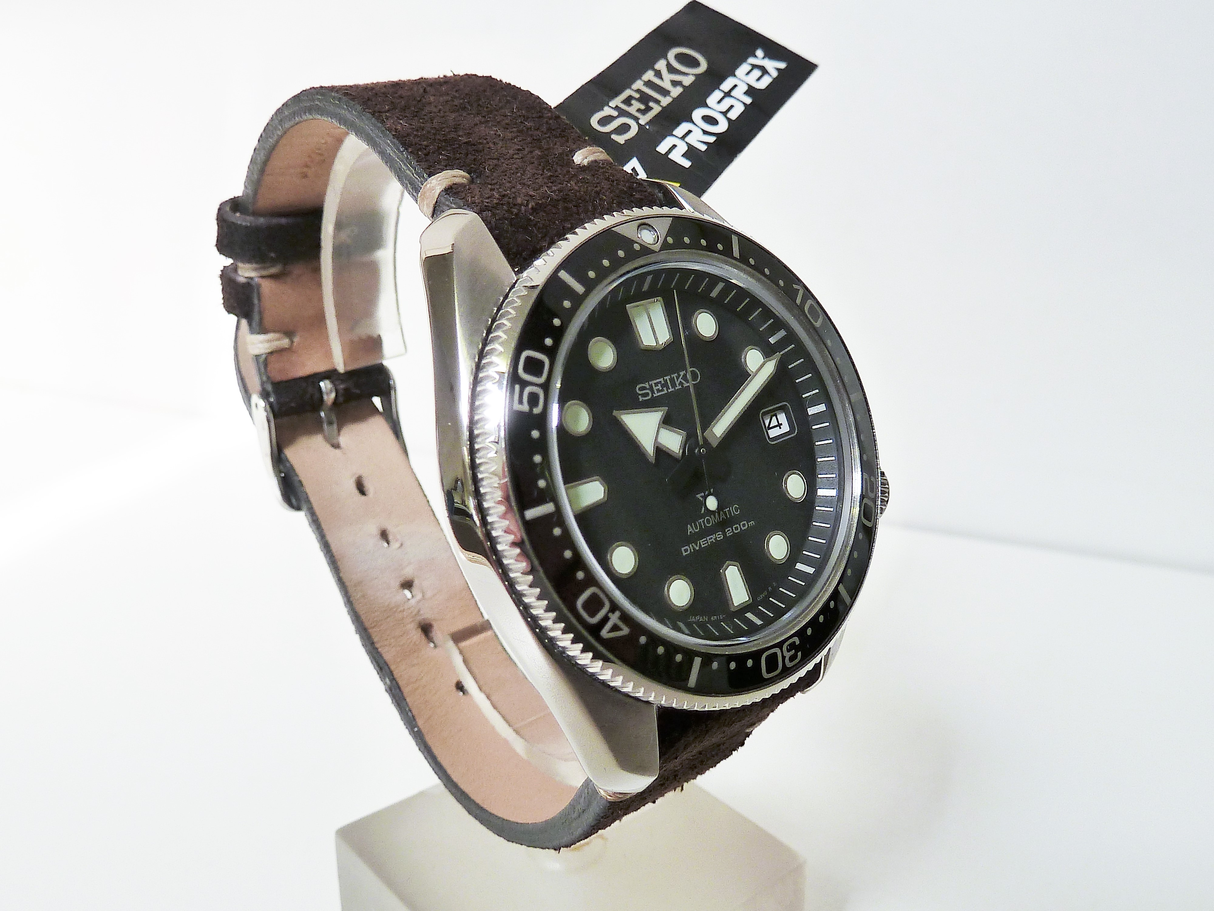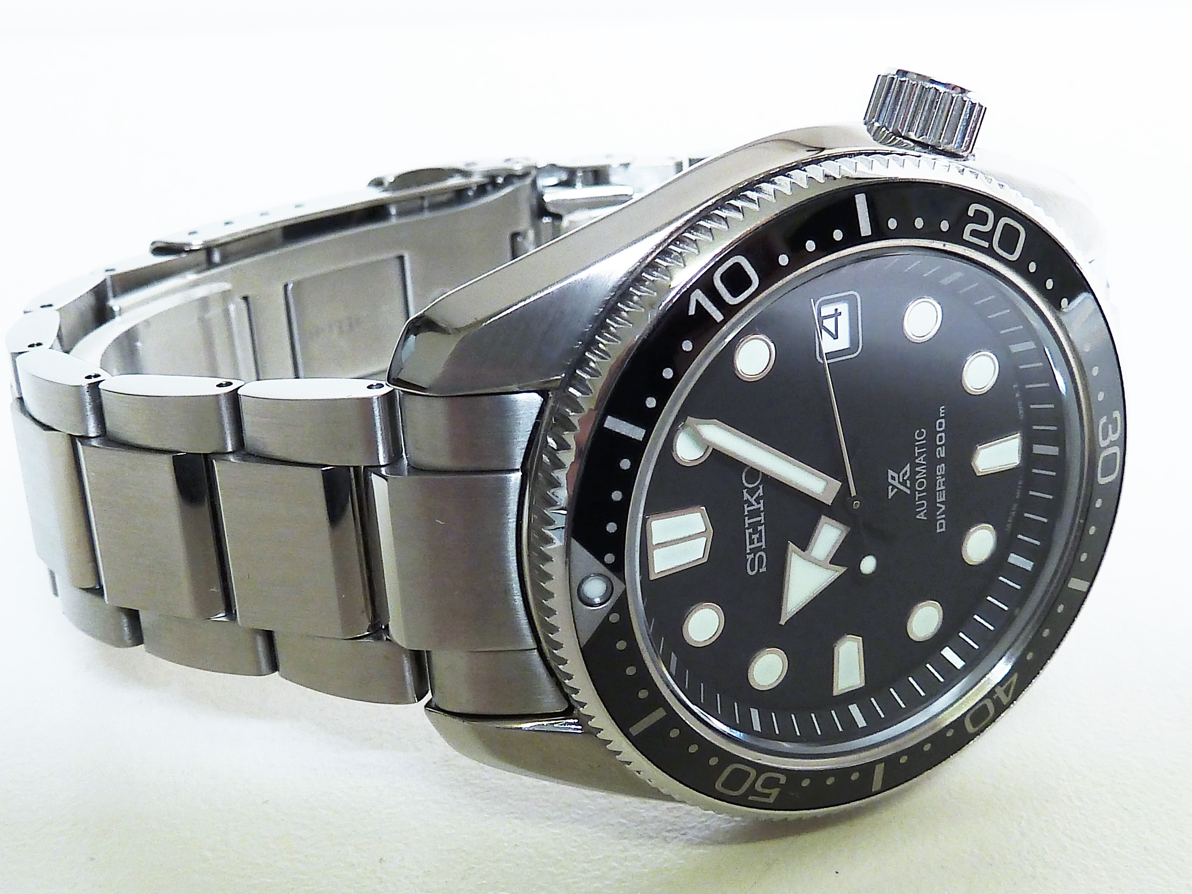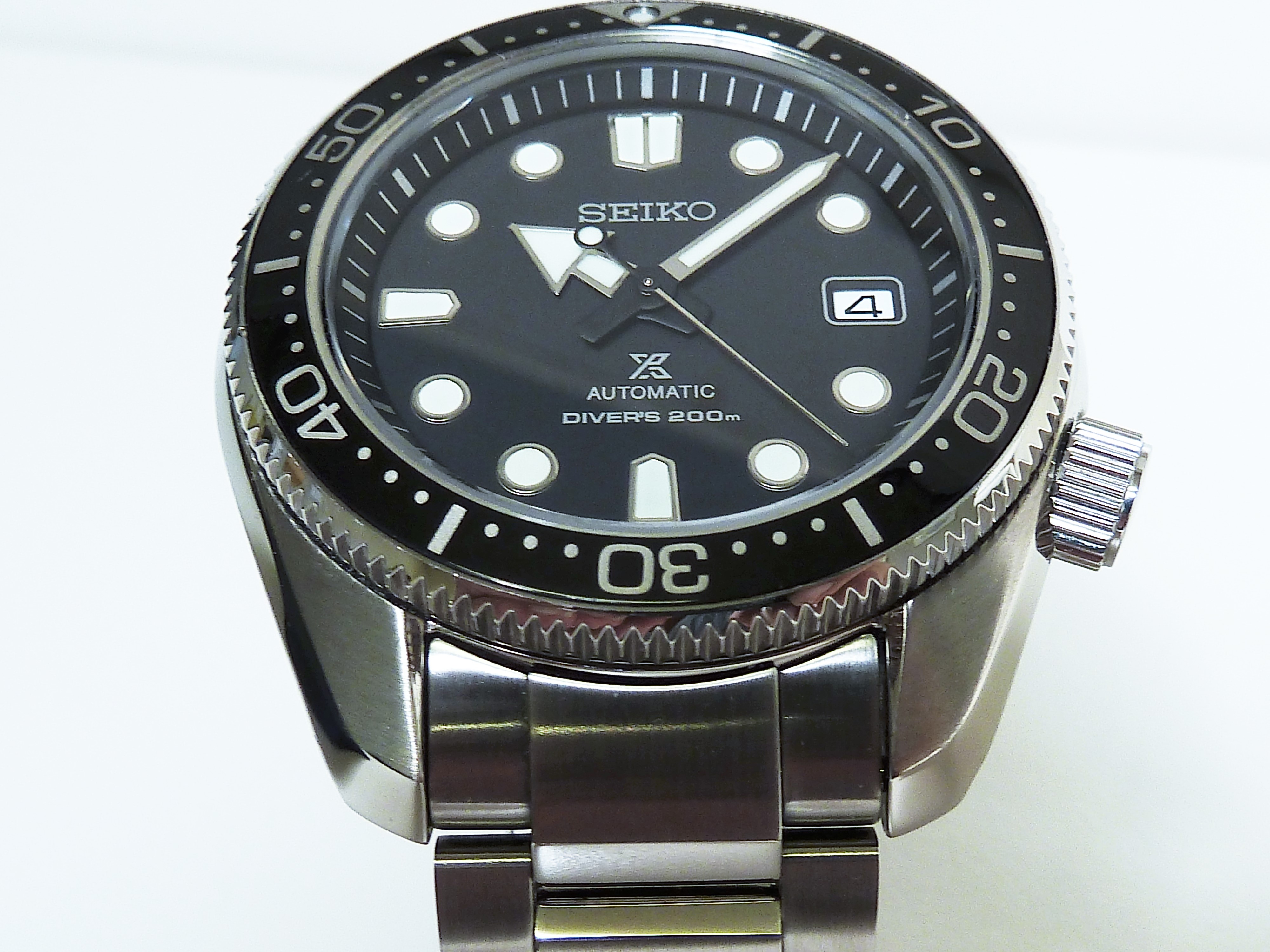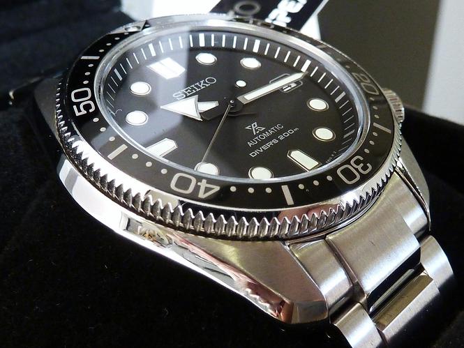 Seiko automaat datum divers 200 m. zwarte wijzerplaat met sterk oplichtende wijzers en markers.