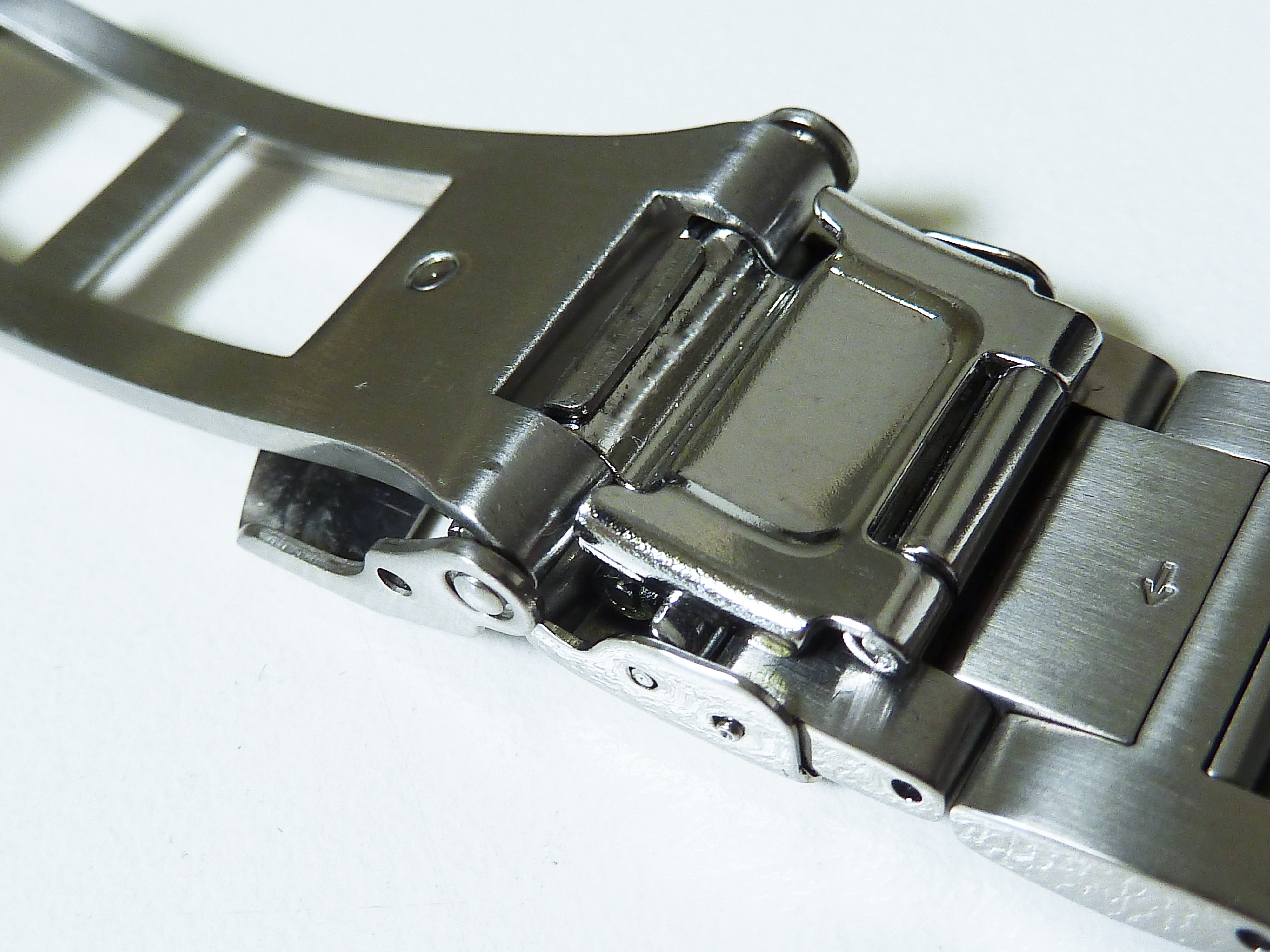 Edelstalenkast saffierglas met anti-reflectie coating diameter 44 x 51 mm. hoogte 13,1 met schroefkroon en originele stalenband. [ met als extra een speciale lerenband ]